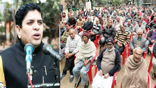 SOS Intl leader Rajiv Chuni addressing DPs’ rally at Rehari in Jammu on Sunday. -Excelsior/Rakesh