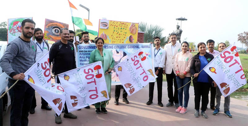 On the first day, SOTTO J&K organized a mega organ donation awareness walk, which was flagged off by Dr Shashi Sudhan Sharma Principal and Dean Government Medical College (GMC) Jammu, flagged off the awareness walk. She was accompanied by Dr Elias Sharma, Nodal Officer, SOTTO J&K and HoD Urology, Super Speciality Hospital Jammu, Dr Sanjeev Puri, Joint Director, SOTTO J&K, Dr Sanjogita Soodan, Deputy Medical Superintendent, Super Speciality Hospital and SOTTO J&K team.