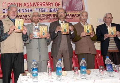 JAMMU, Feb 16: A Souvenir on noted Shaiva scholar Vish Nath Bhat (Jotshi) was released in an impressive function held to observe the first death anniversary of the eminent scholar and teacher at Shardha Kendra, Anand Nagar, Bohri today.