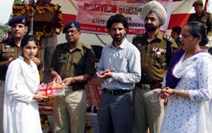SP Kathua Atul Kumar Goel and other dignitaries presenting award to a winner during valedictory function of Painting Competition in Kathua on Saturday.