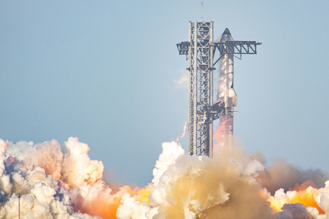 About seven minutes after liftoff, the rocket’s Super Heavy booster successfully returned to the launch site for a “chopsticks” catch — catching the returning booster using mechanical “chopsticks,” called “Mechazilla,” on the launch tower, according to a live broadcast.