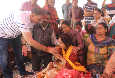 Speaker Kavinder Gupta offering juice to female Contractual Lecturer who was on fast unto death.