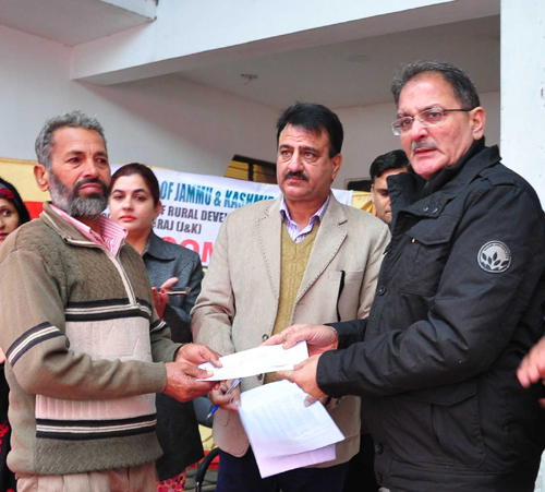 JAMMU, Jan 20: Speaker, Legislative Assembly, Kavinder Gupta distributed cheques worth Rs 6 lakh among 50 BPL families of block Satwari for construction of Individual House Hold Latrines (IHHL) under Swachh Bharat Abhiyan.