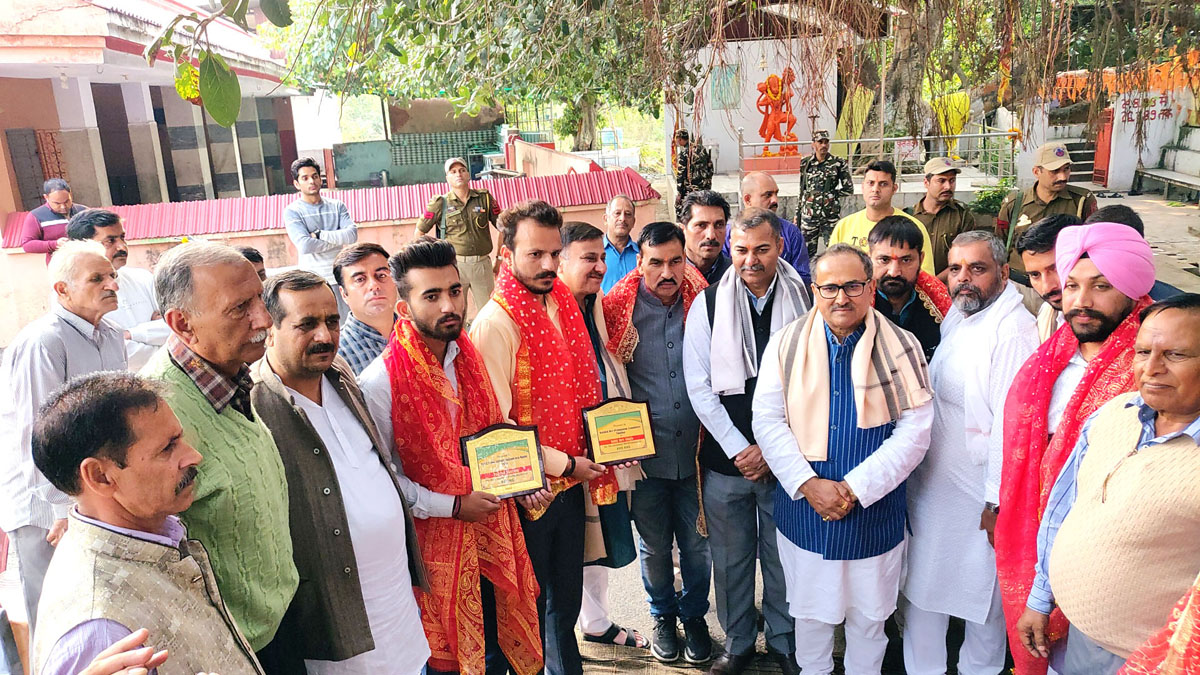 Shakti Dutt Sharma, Secretary-General of Baba Kailkh Dev Management Committee said that Yogeshwar Sharma is local resident of Raipur-Domana Assembly constituency and brought laurels for State in boxing and has won numerous rewards at international level. He has recently won a prize in the International Boxing Competition held at Thailand and will now participate in the boxing competition being held in Nepal. His coach Harinder Pal Singh was also honored. Sahil Dev, who participated in the competition held in London in Kho-Kho international level competition, was also honored by the dignitaries. Dr Nirmal Singh honored both the players.