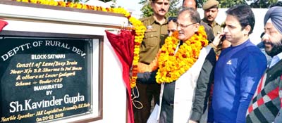 JAMMU, Feb 20: Speaker, Legislative Assembly, Kavinder Gupta today inaugurated lane and deep drain at Lower Gadhi Garh, the works for which have been executed by Rural Development Department.