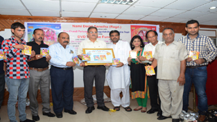 Speaker Kavinder Gupta releasing Bhaint DVDs during a function by Nami Dogri Sanstha on Saturday.