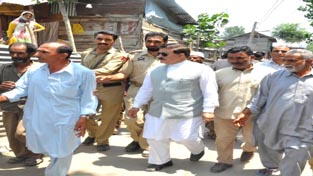 Speaker Legislative Assembly, Mubarakh Gul taking stock of people’s problems at Eidgah constituency on Tuesday.