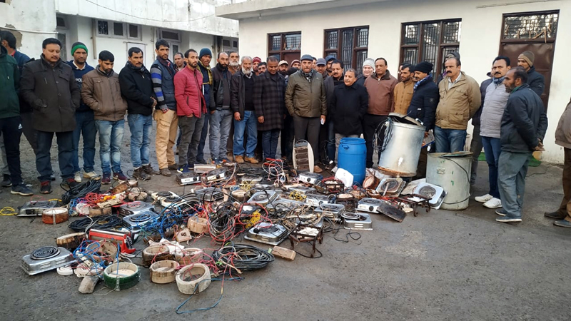 RAJOURI, Jan 10: In a special drive launched by the PDD in Rajouri town, the staff seized at least 160 heaters and other electronic gadgets and imposed a fine of rupees one lakh on the consumers.
