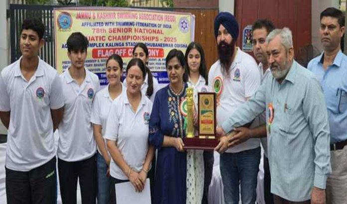 Anuradha this morning flagged off the J&K contingent for the 78th Senior National Aquatic Championship here from Maulana Azad Stadium.