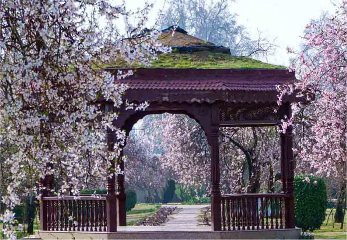 Badamwari Garden is a piece of heaven tucked away in Srinagarcity. After braving the vagaries of harsh winter, Badamwari is thefirst to reverberate with life on the onset of spring season inKashmir. Locals assemble inside the almond garden andannounce the arrival of spring with music and mirth. Apart fromalmonds, different other varieties of flowers are present in thegarden which present a scintillating view.