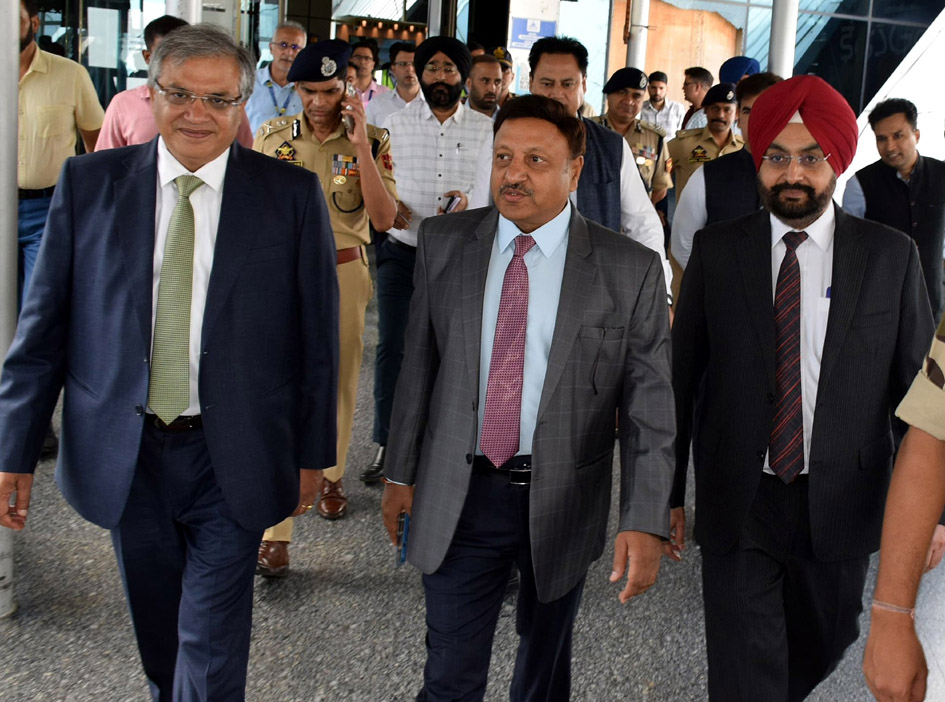 SRINAGAR, AUG 8 :- An ECI delegation led by CEC Rajiv Kumar and ECs Gyanesh Kumar and Dr.SS Sandhu arrives to review poll preparedness in Jammu and Kashmir on Thursday. UNI