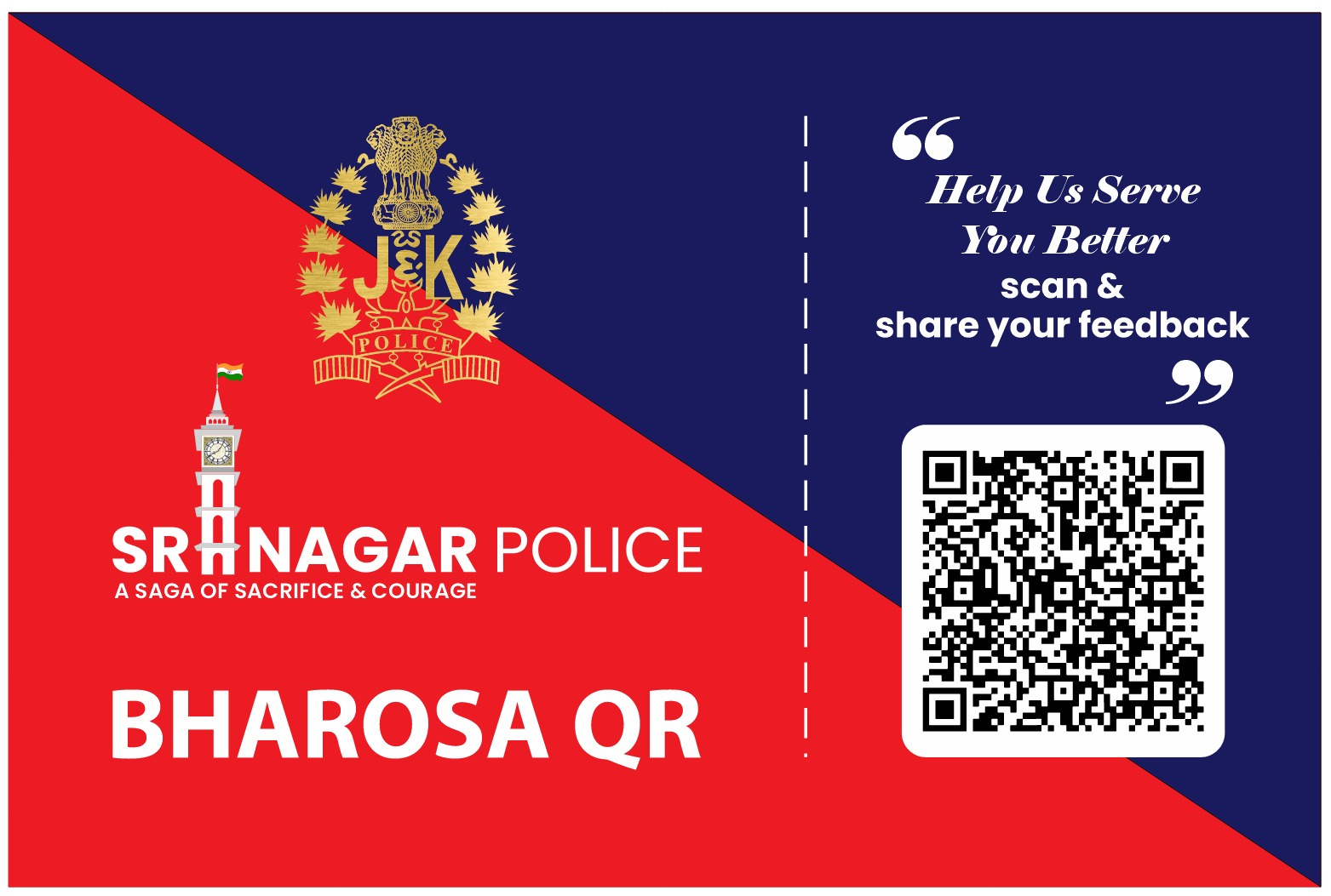 In a step towards further promoting transparency, accountability, and strengthening public trust, Srinagar Police has launched a QR code-based feedback management system named BHAROSA QR to collect real-time feedback from the general public regarding the functioning and services rendered by the police, a police spokesman said.