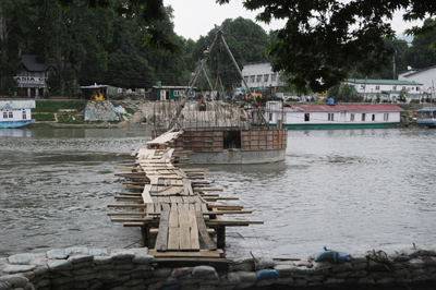 A view of  under construction bridge over river Jhelum near Presentation Convent Higher Secondary School, Srinagar.         	  -Excelsior/ Amin War