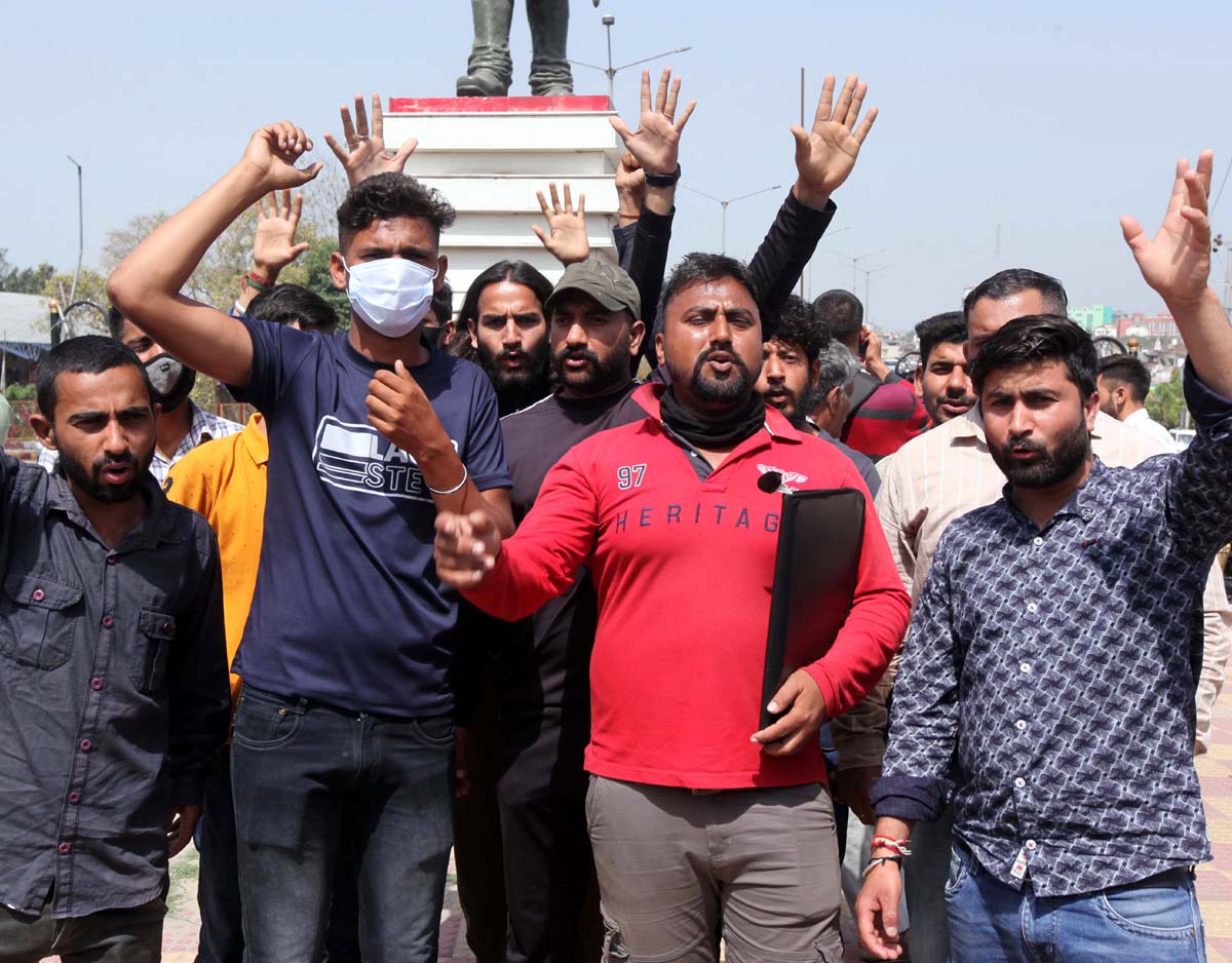 JAMMU, Mar 21: Candidates of SRO-43 today staged a protest demonstration demanding jobs for which they have applied some years back.