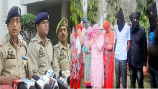 SSP Jammu Sunil Gupta interacting with media persons at Jammu on Sunday (left), detained persons in inter state sex-trade racket (right). — Excelsior/Rakesh