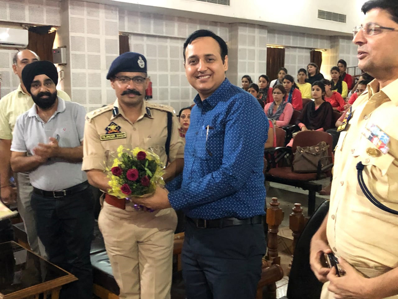 SSP Jammu, Tejinder Singh, being felicitated during a seminar at Government Polytechnic, Bikram Chowk in Jammu.