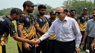 SSP Rajeshwar Singh, Chief Executive Officer PPCPL interacting with players of Chenab Tigers at GGM Science College Hostel ground on Monday.
