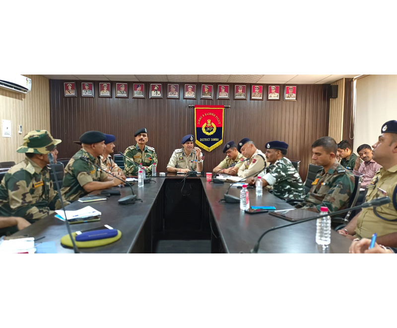 SAMBA, May 17: Senior Superintendent of Police Samba, Benam Tosh today chaired security review meeting at District Police Headquarters Samba, which was attended by the officers of Army, BSF, CRPF, ITBP, CISF, IB, CID, DSB, Addl SP Samba, all SDPOs, all I/C PPs, all I/C BPPs & other sister agencies to discuss the security preparedness ahead of G20 summit 2023.