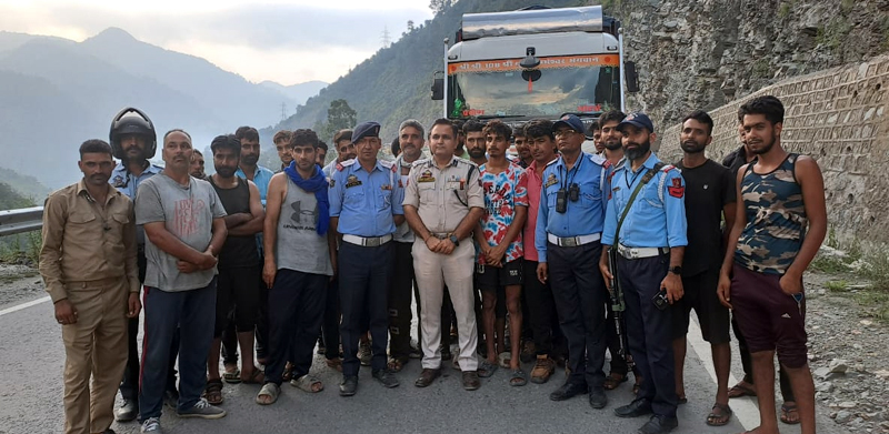 JAMMU, Aug 10: SSP Traffic NHW Ramban Rohit Baskotra alongwith other traffice police officers of Trafffic Sub Division Ramban and banihal visit national highway from Nashri to Banihal and interacted with drivers travelling on NH-44. During the course of interaction, SSP Traffic NHW Ramban appraised the drivers about traffic rules and directed them to follows traffic rules to prevent their as well as others and users lives.