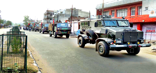 Earlier, Army staged flag march for second consecutive day today all along Satwari-RS Pura and Satwari-Digiana roads to quell any violence and help para-military CRPF and police to maintain law and order following yesterday’s killing of a youth in police firing at Ranibagh while protesters agreed for post-mortem of deceased Jagjit Singh only after police registered a FIR under Section 302 RPC (murder) against a police constable of SOG, who was posted as PSO with the SSP Jammu, at Satwari police station in connection with yesterday’s firing that flared up clashes all over Jammu.