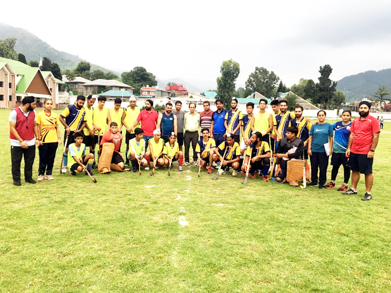 Winners Stadium Orange team posing for a group photograph after a win during a Hockey Tournament in Poonch.