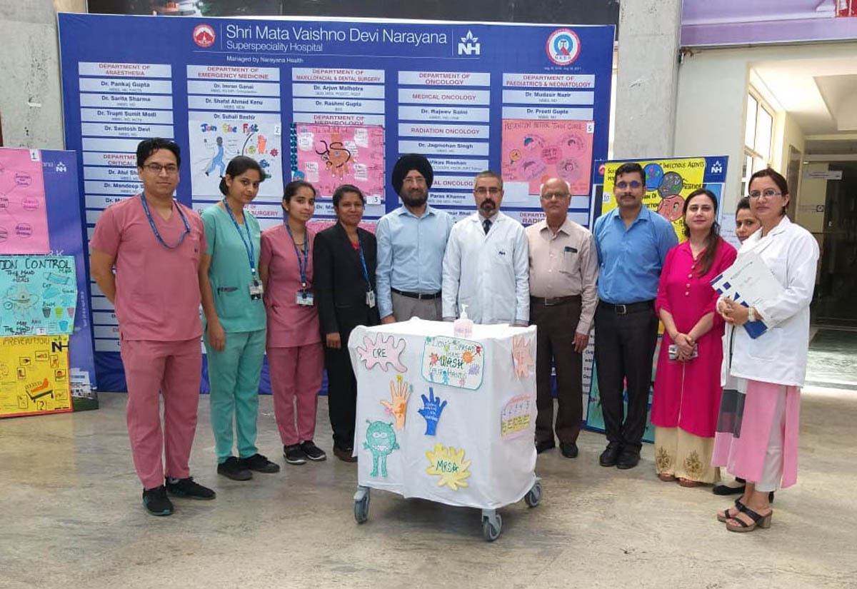 Staff of SMVD Narayana Super Speciality Hospital posing on culmination of Infection Control Month.