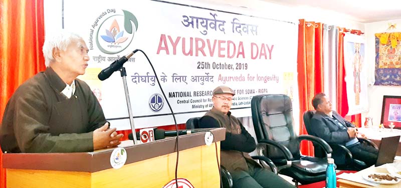 This was stated by former MP from Ladakh, Thupstan Chhewang who was the chief guest during Ayurveda Day celebration at the National Research Institute for Sowa-Rigpa (NRISR). National Ayurveda has been celebrating since 2016 on different theme and this year theme is “Ayurveda for longevity”. Thupstan Chhewang said that Kashmir centric Government never supported Ladakhis in safeguarding unique culture and traditions of Ladakh and always became hindrance in it. However, Chhewang made it clear that Ladakhis have nothing against people of Jammu and Kashmir. “Development activities are not the priority of UT Ladakh that happens automatically but promotions of traditional system of Ayush, language and culture should be the top priority of UT otherwise there is no use of UT also” said former MP while expressing his hope to have lot of development and progress in Sowa Rigpa system in future UT Ladakh.