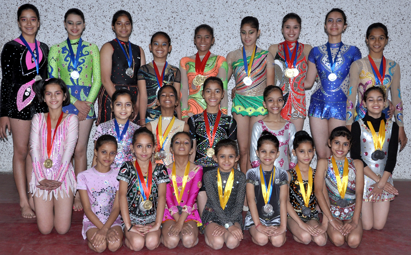 JAMMU, Dec 5: J&K Gymnasts proved their mettle again at national level after winning 32 medals including 13 gold, 12 silver and 7 bronze during 22nd National Rhythmic Gymnastics Championships held at Fatehgarh Sahib, Punjab.