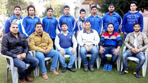 State Powerlifting team posing along with the office bearers of the Association in Jammu on Sunday.