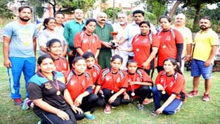 State Vice President BJP Yudhvir Sethi awarding winner team of Handball Championship at MA Stadium Jammu on Thursday.