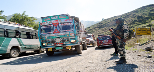 Stranded vehicles being cleared on the National Highway after it was restored for traffic on Tuesday.—Excelsior/ Sajad Dar