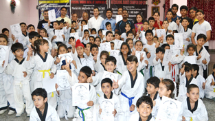 Students during Belt Grading Examination conducted by All India Taekwondo Union in Jammu.