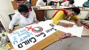 Students busy in making posters during Display Your Talent at Jammu University on Wednesday. -Excelsior/ Rakesh