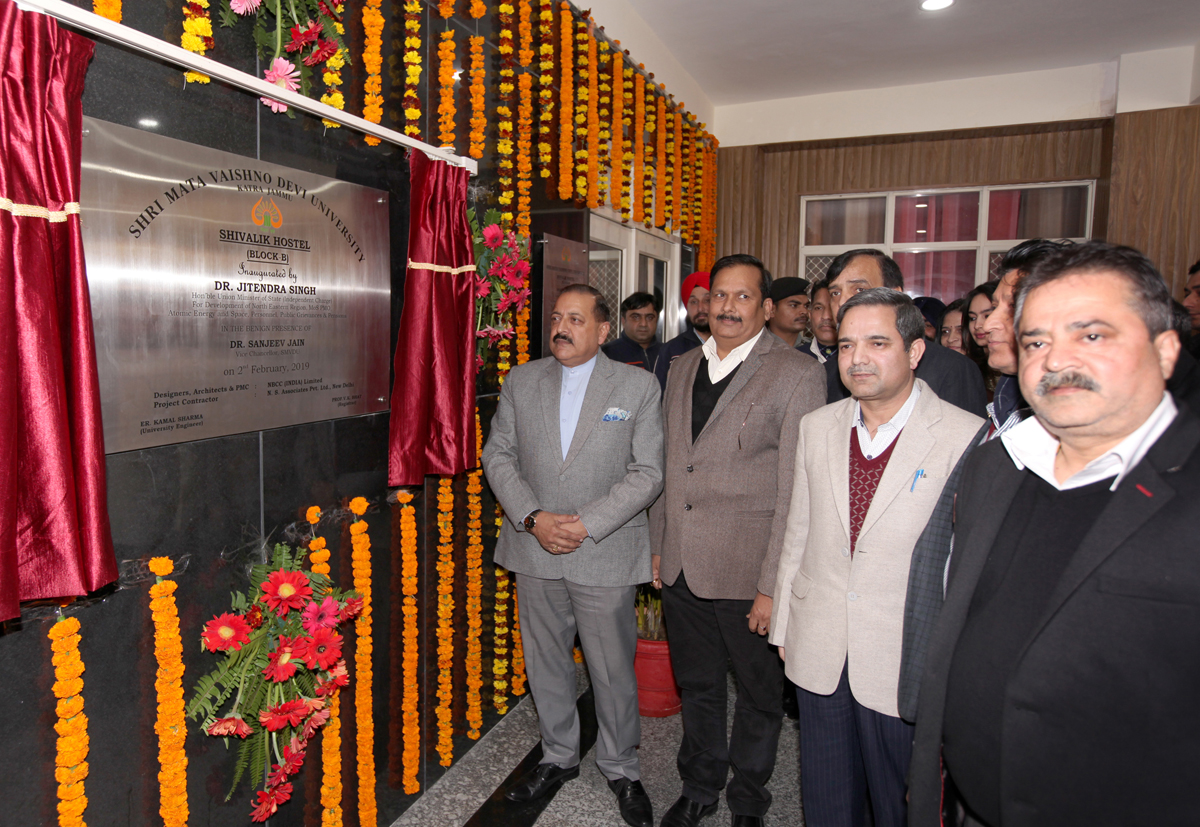 KATRA, Feb 2: Union Minister in PMO with Independent charge of North Eastern States, Dr. Jitendra Singh today inaugurated the Shivalik Hostel for Girls at Shri Mata Vaishno Devi University, (SMVDU) Katra.