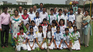 Students of Eco-Club, who planted over 100 saplings of various medicinal and flowering plants in a Tree Plantation Drive, organized by Eco-Club of Heritage School, under the aegis of WWF and in collaboration with Bharat Vikas Parishad. Also seen in the picture are office bearers of BVP Jammu; Principal, J S Dhami, Vice-Principal, Dr Gautam Guha and staff members of Heritage School, Jammu.