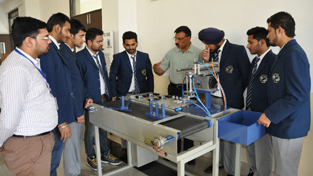 Students of Global Institutes displaying the developed innovative Robot.