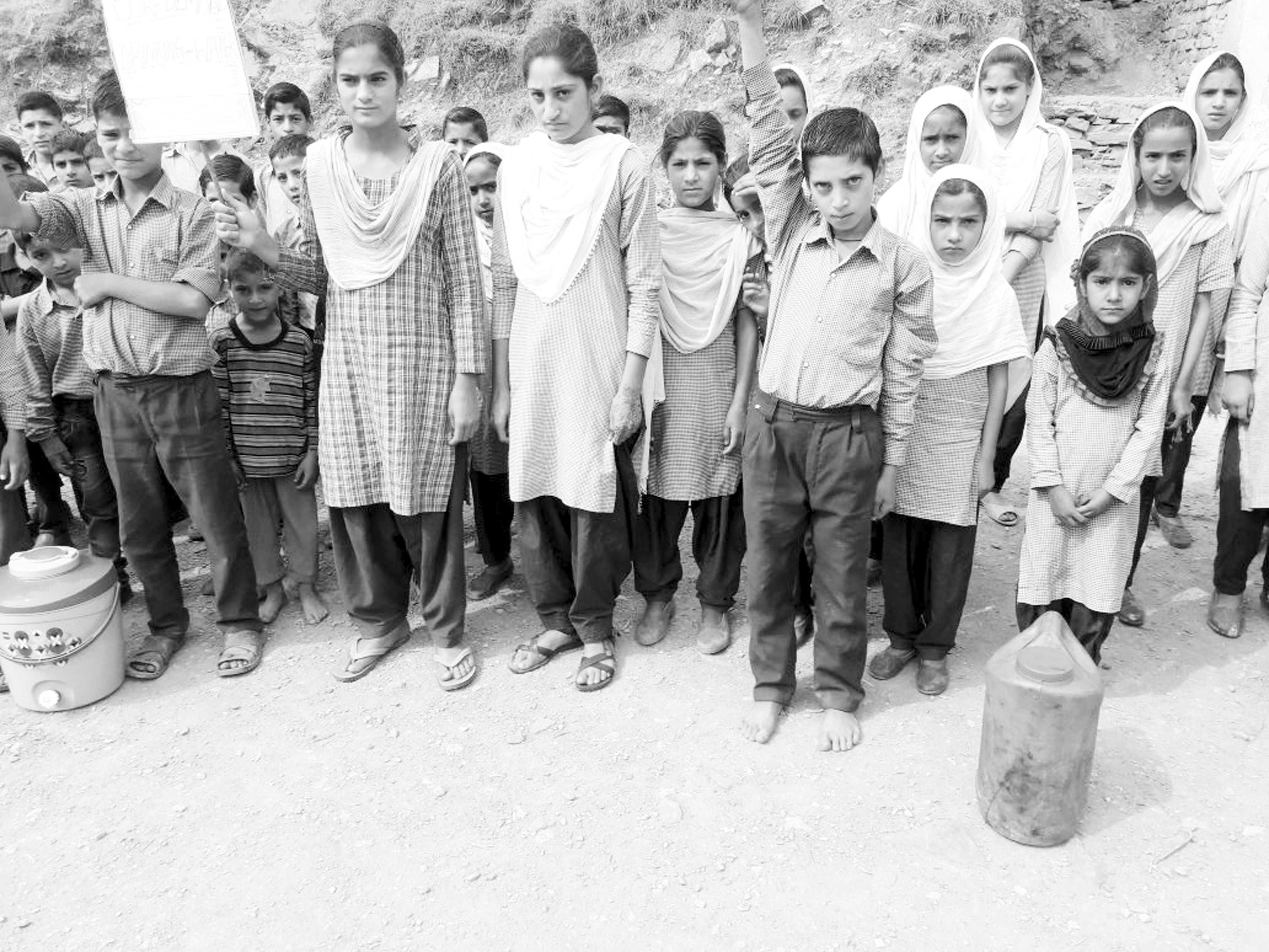 The students, while holding placards in their hands, raised slogans for providing drinking water in the school premises. “We have been living in a miserable condition due to lack of basic facilities at the school. For the past 10 days, there has been no supply of drinking water in the school,” said a student.