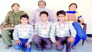 Students of Government High School, Meen Sarkar, who brought laurels to the school by winning gold in Under-14 boys Kho-Kho Tournament, organized by the Department of Youth Services and Sports at HSS Vijaypur, recently. The gold medal winners included Gulshan Kumar, Pankaj Kumar and Rohit Singh.