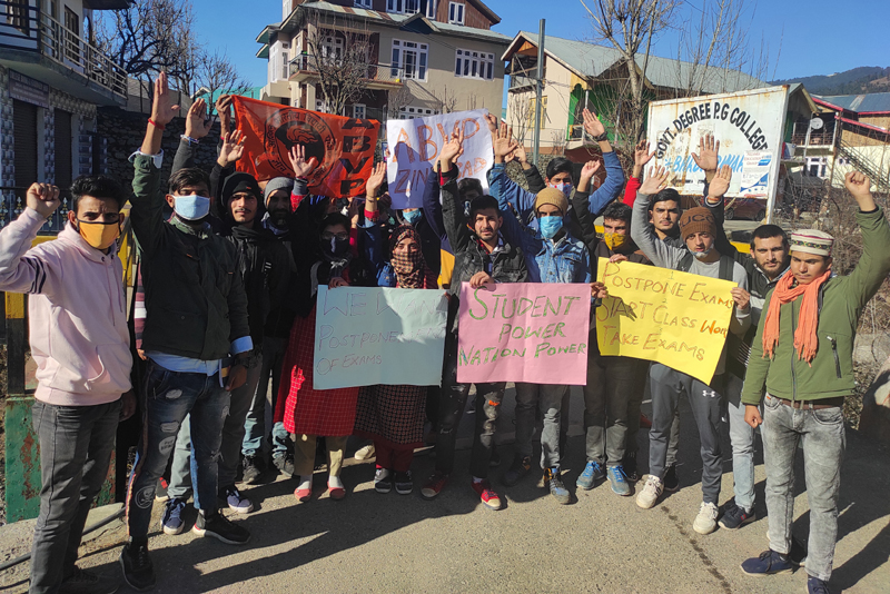 Protesting students took to various online platforms to protest. At PG College Bhadarwah, they held physical protests demanding either syllabus should be curtailed or examinations should be postponed to March.