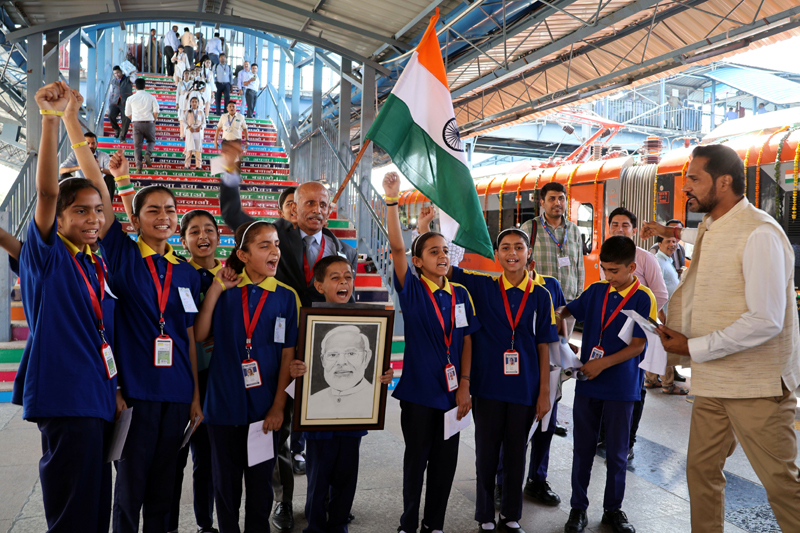 Students holding Tricolor and a photo of PM Narendra Modi during Vande Bharat’s flag-off ceremony in Srinagar on Friday. By Daily Excelsior - June 7, 2025 Share FacebookTwitterWhatsAppPinterestLinkedinCopy URLTelegramEmailTumblrReddItPrintKoo Students holding Tricolor and a photo of PM Narendra Modi during Vande Bharat's flag-off ceremony in Srinagar on Friday. Students holding Tricolor and a photo of PM Narendra Modi during Vande Bharat’s flag-off ceremony in Srinagar on Friday. Follow our WhatsApp channel