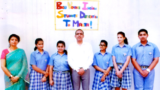 Students of KC Public School posing for a group photograph along with the Principal, Amarendra Kumar Mishra before leaving for a prestigious trip to Malta.