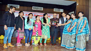 Students of Sant Mela Singh College being awarded Rolling Trophy during valedictory function of ‘Lok Rang Mahotsava’ at JU on Friday.