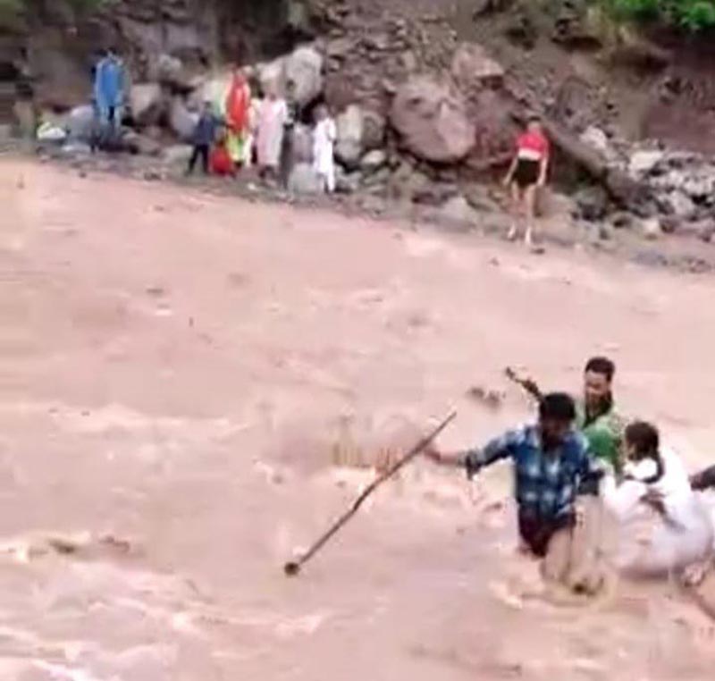 Dozens of students pass through this large Nallah to reach Higher Secondary School. Locals claimed that at the time of flooded river a major accident was averted when a girl student got washed away while crossing it. A local person present on the spot tried to take the school girl across the river. He also fell and swept away at some distance along with the girl in the strong current of water, but did not leave the girl’s hand and during this time two young men standing on the other side of the river also jumped into and rescued the girl.
