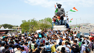 The protesting students assembled at Tawi Bridge near Dogra Chowk and blocked the vehicular movement for some time.