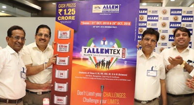 KOTA, Aug 23: ALLEN Career Institute national level talent encouragement exam TALLENTEX 2019 for students of class 5 to 10 and 11 (Science) will be conducted zone-wise at 450+ test centers of 300+ cities spread across 25 States of the country.