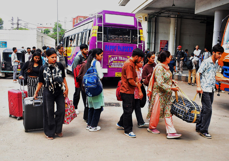 JAMMU, May 9: Students from other districts pursuing education at different institutions here along with workers and others from outside have started moving to their homes after last night’s missile and drone attack in Jammu.