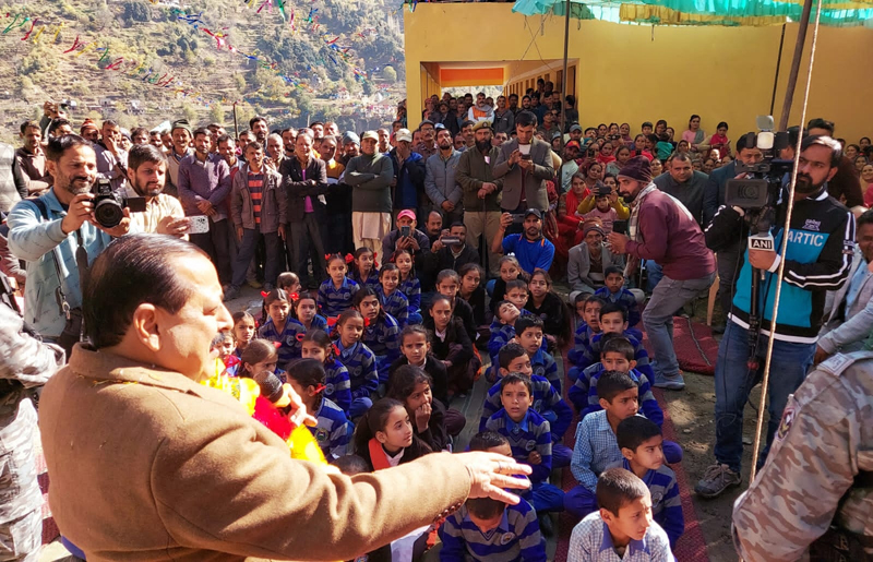 Dr Jitendra Singh, who was on an extensive tour of the remote and peripheral areas of the hilly district of Kishtwar, visited Gulabgarh in the Paddar area and far-off village of Massu, where he also inaugurated the new School set up by “Shiksha Bharti” for the village children.