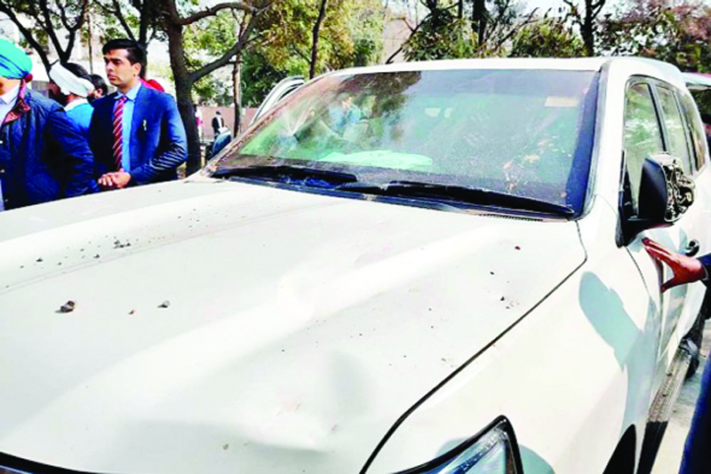 Videos of stone-pelting on Sukhbir’s car went viral on social media.