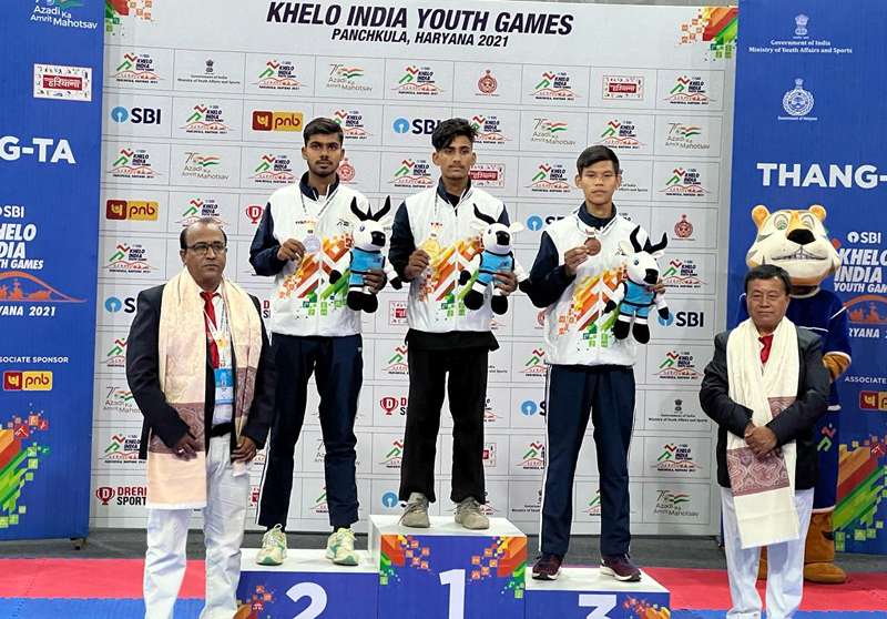 JAMMU, June 6: Sumit Bhagat brought laurels to Jammu and Kashmir by winning first Gold in ongoing Khelo India Youth Games (KIYG) in Thang Ta Martial Arts, organised by Ministry of Youth Services and Sports at Panchkula in Haryana, today.