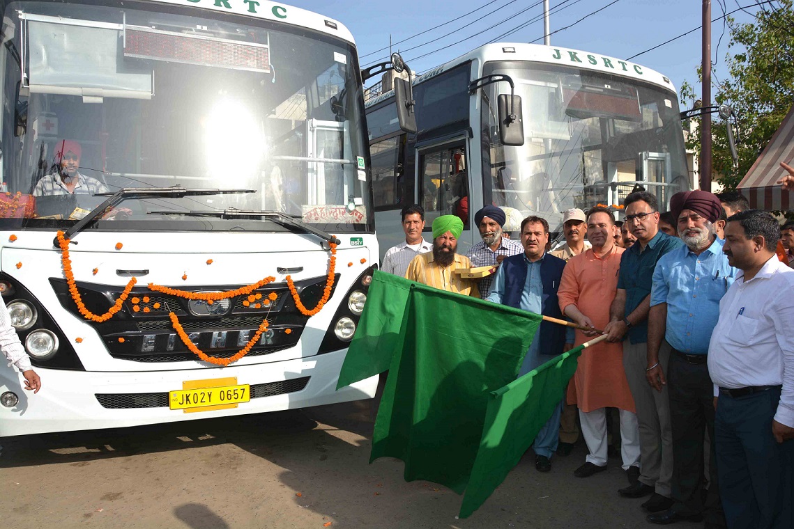 JAMMU: Minister of State for Transport, Sunil Kumar Sharma today flagged off 32 newly procured BS-IV buses of Jammu and Kashmir State Road Transport Corporation (JKSRTC) on different routes of Inter State Division here at General Bus stand Jammu.